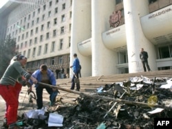 Снаружи это выглядит дико из-за разбитых окон, видны места, где здание горело. Внутри же создается ощущение, что там довольно долго велись боевые действия. До сих пор лежит буквально по колено битое стекло, по которому ты идешь. Разбито все: плафоны, люстры. Среди этих осколков, кирпичей и камней – бумаги, книги, разбитая оргтехника, разломанные стулья, диваны. По словам главы парламента, приблизительная оценка ущерба после разгрома в здании администрации президента и здании парламента – от 30 до 40-45 миллионов долларов. Он подчеркнул, что погромщики интересовались в первую очередь сейфами, хард-дисками компьютеров с информацией. При этом они целенаправленно сжигали архив документов, который находился внутри здания. Пострадало около 20 кабинетов.