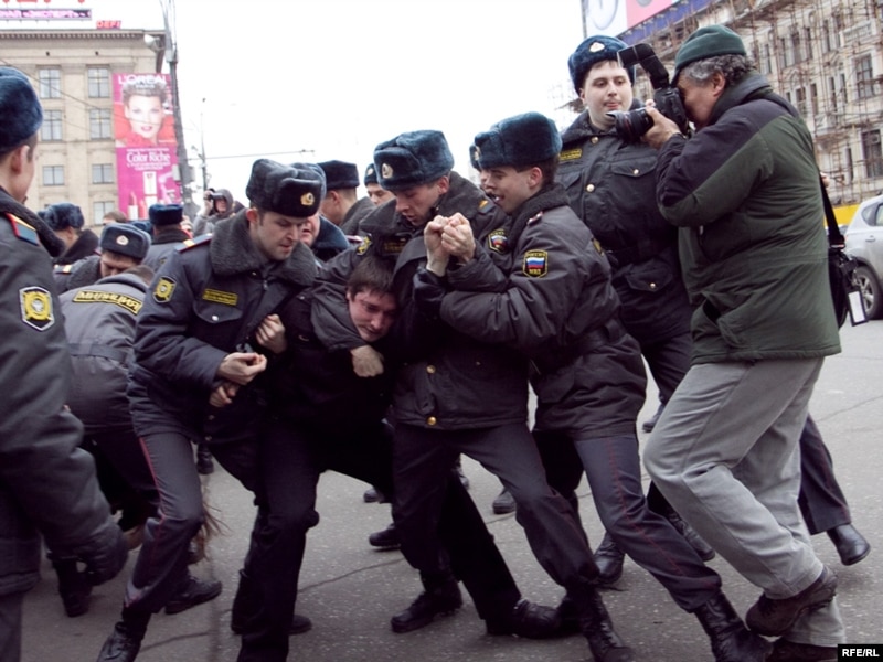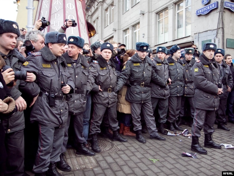 Милиция на Триумфальной площади в Москве во время акции за свободу собраний