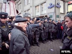 Акция была молчаливой. "Свободу!" или "Позор" участники начинали скандировать, только когда милиция начинала задержания