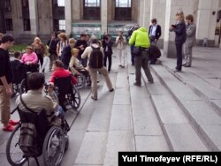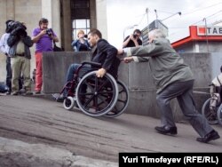 "Пойдите вы в следующий раз к мэрии, подайте петицию," – посоветовал участникам пробега Уполномоченный по правам человека Владимир Лукин. Прав, наверное, Владимир Петрович, хорошо знающий материал, с которым имеют дело российские граждане: надо просить о милосердии к инвалидам, желательно униженно.