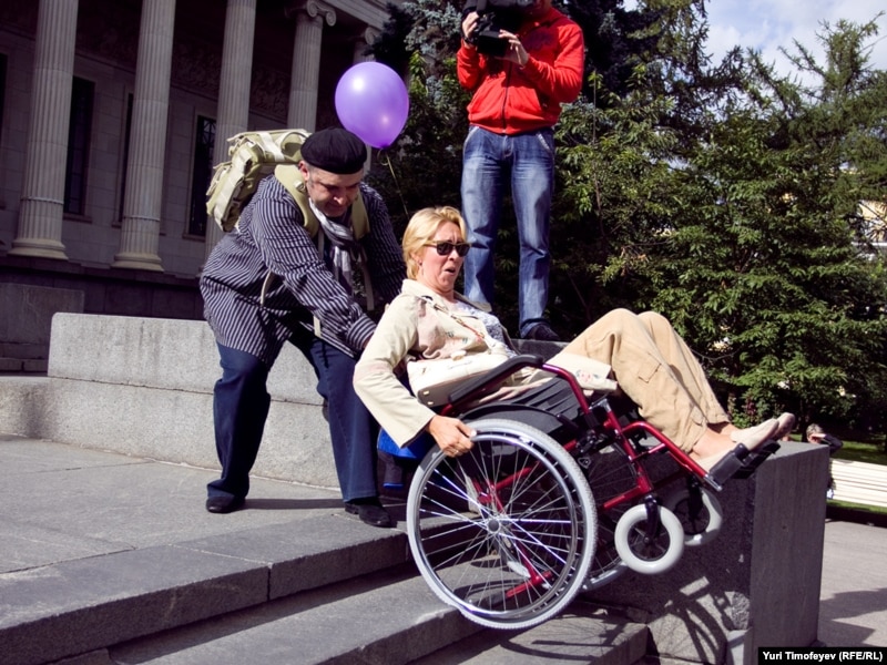 Татьяна Лазерева пытаеться попасть в Пушкинский музей на ивалидной коляске