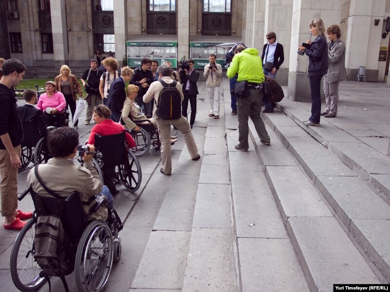 Состав исследователей выглядел так: человек двадцать людей с ограниченными возможностями, десяток здоровых участников, добровольно усевшихся в инвалидные кресла, многочисленные пешие сочувствующие и журналисты.