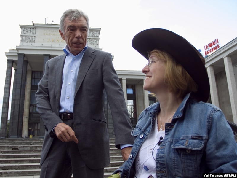 Уполномоченным по правам человека в России Владимир Лукин с трудом втолкнул участника акции по пандусу у Российской государственной библиотеки