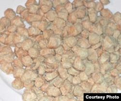 Зато русские зэки очень часто видят в своих мисках - “вискас”, “кенгурятину” и ТКСБ. Такое объедение! Действующие сейчас приказы Минюста о минимальной норме питания для осуждённых к лишению свободы, содержащихся в учреждениях ФСИН, на мирное время, таких терминов, конечно, не содержат, причём аж с 2005 года, поэтому ТТ, вероятнее всего, не мог прочитать в нормах питания и размещения, КАКАЯ это вкуснятина. А вещь действительно потрясающая: всеми этими тремя терминами описывается одна и та же субстанция – текстурированный концентрат соевого белка, по-другому известный как “соевое мясо”. Кто не видел – вот, посмотрите на картинке.