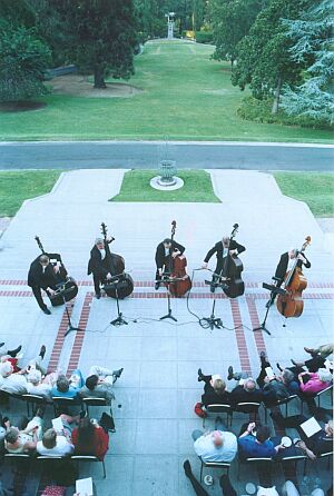 После того, как мы стали немножко развиваться как самостоятельная единица, наше начальство нас заметило, наше руководство, и они нас стали тоже иногда кое-куда приглашать, рекомендовать, мы стали играть чаще. Уже дважды было так, у нас в Америке есть такой цикл - камерные вечера российского оркестра Вилля Монталя, и мы дважды, этим летом и предыдущим летом, играли отдельное отделение контрабасовый ансамбль, это объявлено, напечатана программа.