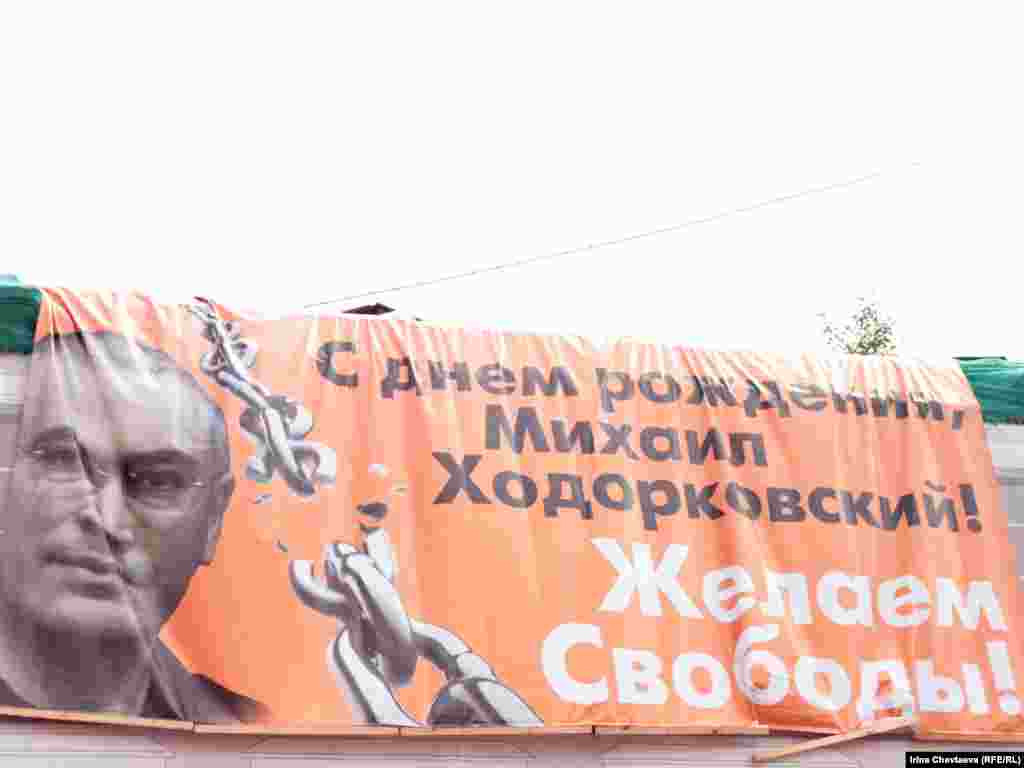 Несколько десятков человек с воздушными шарами и в майках с портретом Михаила Ходорковского колонной пошли по Арбату 26 июня, раздавая подарки прохожим. Таким образом они поздравили Ходорковского с днем рождения. Сотрудники полиции сопровождают колонну, некоторые участники акции были задержаны.
