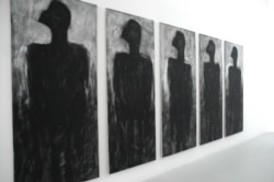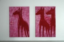 Йозеф Жачек: Меня интересует, что происходит во всем мире, не только в России. Конечно, я обращаюсь и к русским зрителям тоже. Это большая галерея, вот вы пришли и увидели эти картины. Цикл, который здесь выставлен, называется ''Шепоты''. Я чувствую, что в обществе существует шум, ропот, что-то происходит, не все в порядке. Здесь четыре картины – и каждая из них зеркально отображает ту, что висит на соседней стене. Это зеркало, которое отражает наши неблаговидные влечения, стремление к саморазрушению, вещи, типичные для современного мира.