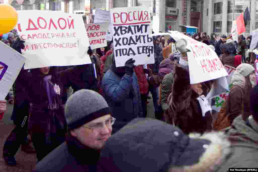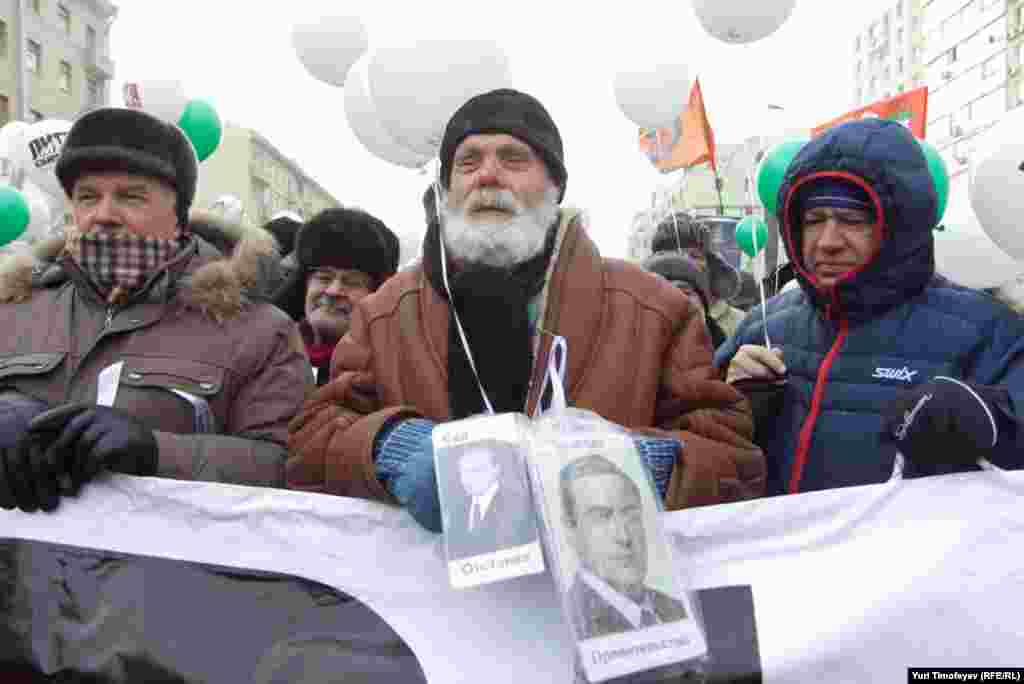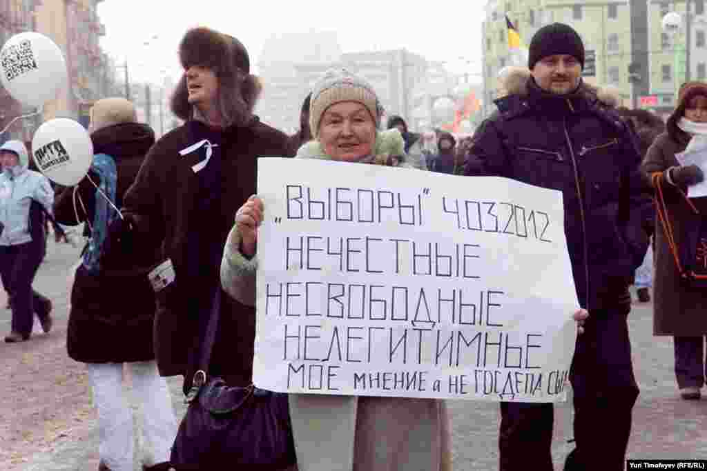 Russia -- Protesters gather with balloons and placards during a demonstration for fair elections in central Moscow, 04Feb2012