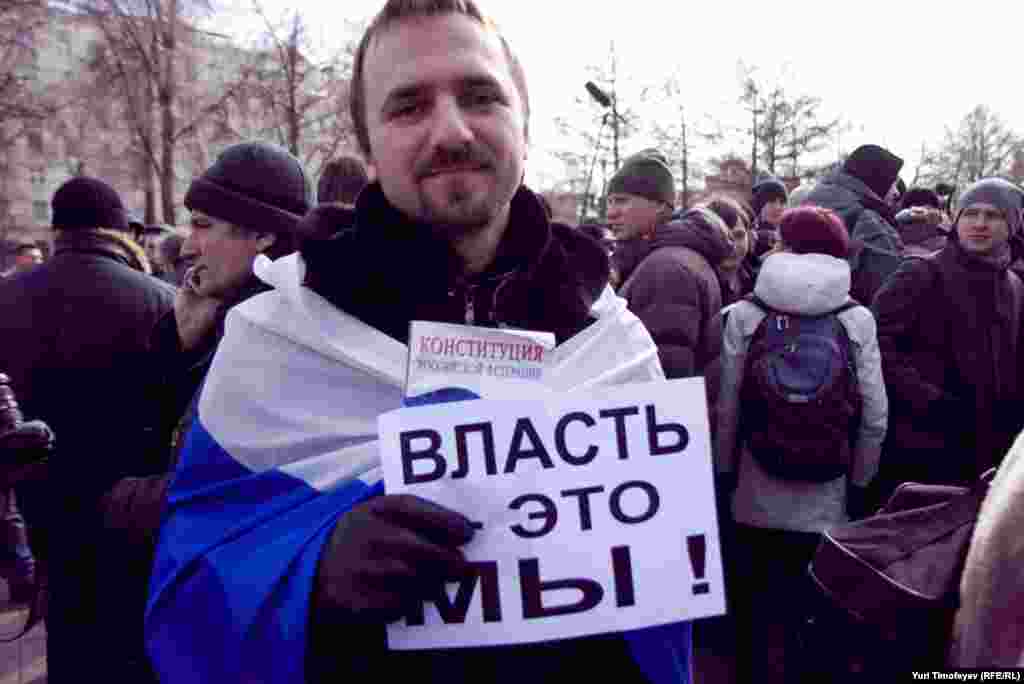 Перед началом встречи оппозиционеров на Пушкинской площади, некто в образе Пушкина к плаката "Моя площадь не место для революционных заговоров" хотел прочитать стихотворение "Клеветникам России"...