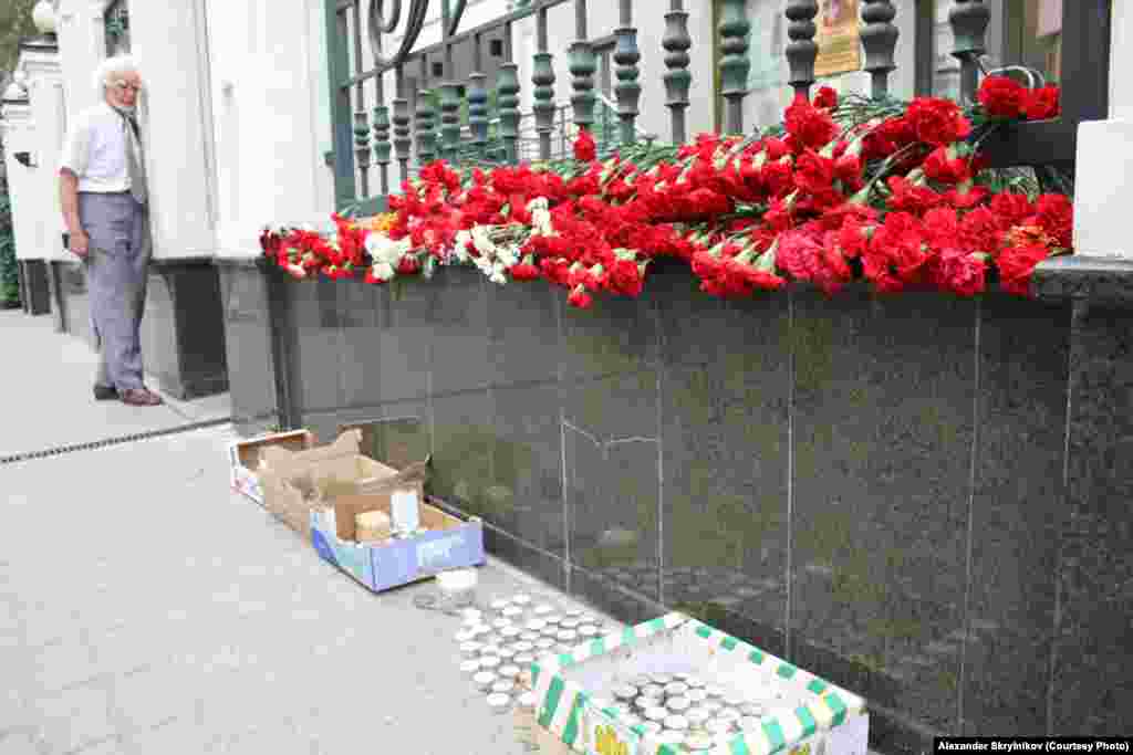 Russia--Day of mourning in front of the Krasnodar region representation in Moscow, 9Jul2012