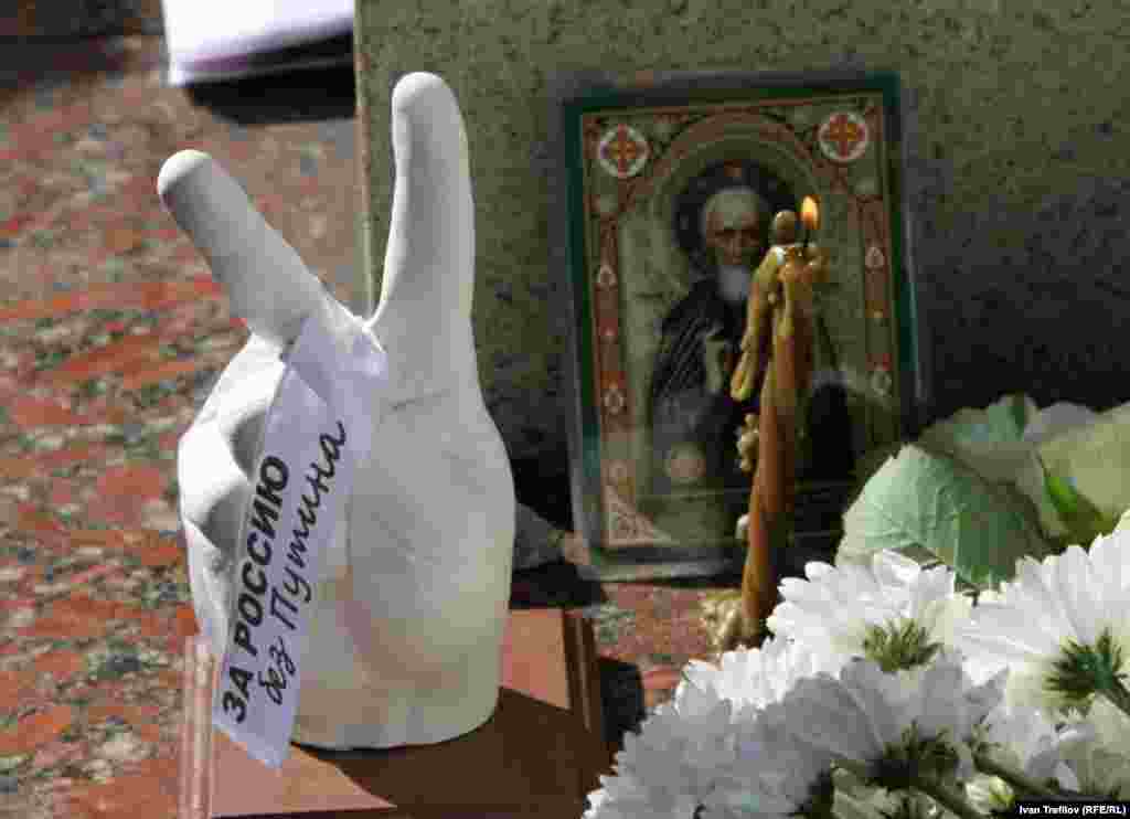 У памятной стеллы 19 августа прошла акция "День свободной России". Люди приносили к памятнику цветы, зажигали свечи. Один человек был задержан.