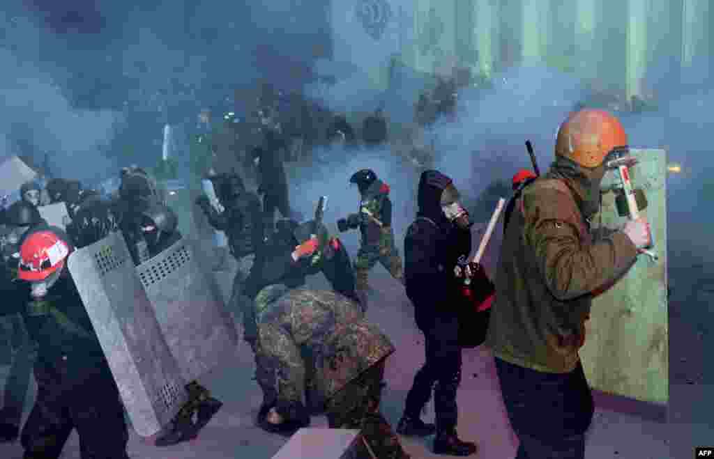 Многие демонстранты защищались с помощью отобранных у "Беркута" щитов