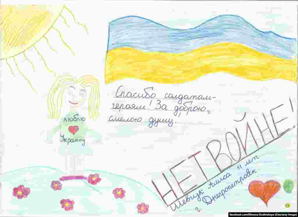 Российский комитет солидарности с Майданом собирает на своей странице в Facebook рисунки детей из разных стран мира против войны на Украине. Рисунки будут отправлены украинским солдатам на передовую, а некоторые из них заменят плакаты на антивоенных акциях протеста.