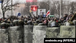 На акции оппозиции в субботу полиция задержала сотни человек, среди них более 20 журналистов. Также прошел обыск в офисе правозащитного центра "Весна", там задержали 57 человек.