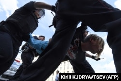 Корреспондент Радио Свобода сообщает, что большая группа людей заблокирована в переходе под Пушкинской площадью, их не выпускают на улицу.