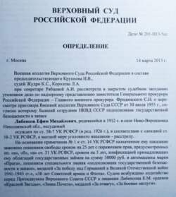 В биографической справке героя новой публикаци, Ефима Либенсона, вместо даты смерти придется поставить прочерк. Мы не знаем, где и как умер бывший полковник госбезопасности после того, как вышел из советского лагеря в 1968 году – личные дела чекистов хранятся за семью печатями в архивах ФСБ. Однако о том, как он жил, мы узнаём из его биографии, а также документов, связанных с его служебной деятельностью и осуждением. Например, из проекта обвинительного заключения по уголовному делу Либенсона за подписью и. о. генерального прокурора СССР Баранова становится известно о садистских наклонностях чекиста. Полный текст документа доступен в интернете. Еще одним важным документом является определение Верховного суда РФ от 14 марта 2013 года. Суд изменил статьи Уголовного кодекса, по которым Либенсон был привлечен к ответственности, с политических на общеуголовную. Российский суд также оставил прежнюю меру наказания в виде лишения свободы, но исключил из приговора указание о конфискации имущества. Такое решение было принято потому, что "Либенсон совершил не контрреволюционные преступления, а злоупотребление властью и превышение власти при наличии особо отягчающих обстоятельств".