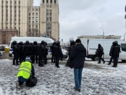 В сквере у метро "Красные ворота" полиция также задерживает людей, которые, по словам корреспондента Радио Свобода, мирно стояли