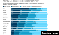 – На сайте Левада-центра приводятся данные аналогичного исследования, проведенного Pew Research Center летом 2020 года в 14 странах. На первых местах по роли религии в жизни граждан – США, Италия и Канада, на последних – Япония, Швеция и Дания. Что можно сказать о месте России в этом списке?