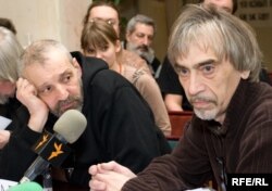 Александр Цигаль: Приостановив голодовку, я до сегодняшнего времени не ем ничего и пью воду. Так что, значит, приостановление общей голодовки, но пока индивидуально она продолжается. И вообще, у нас нет особо строгой дисциплины, ее и быть не может. Потому что художники – народ штучный, и каждый решает сам за себя эти проблемы. И в общем, свои соображения он сам несет в себе. И вот Иван Павлович сейчас сказал правильно, что это такой вопль отчаяния. Но кроме вопля отчаяния это еще и позиция каждого из нас, что нам отвратительно то, что происходит. Мы абсолютно не согласны с этим. И мы не знаем, каким еще способом выразить наше несогласие.