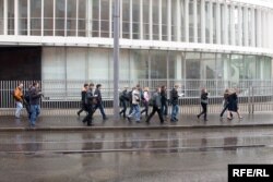 Через 20 минут, с другой стороны подошла группа молодых людей в куртках «Молодой гвардии». Они раскидывали листовки...