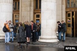 Организаторы встречали журналистов у метро Новослободская…