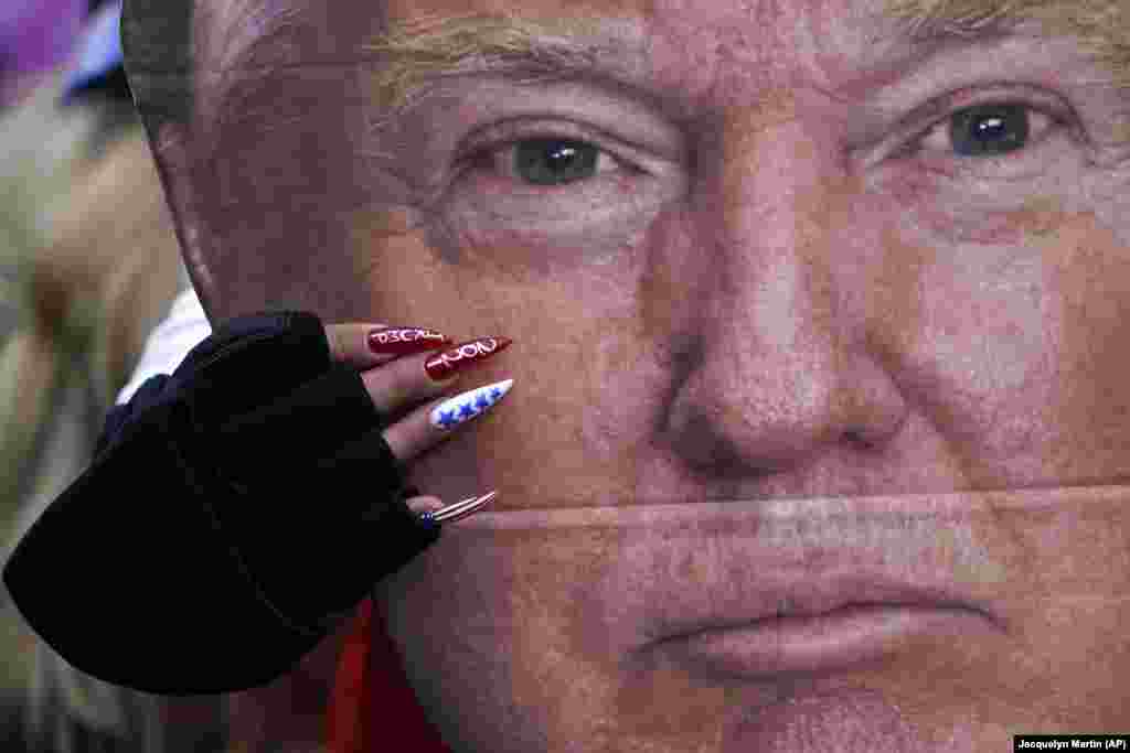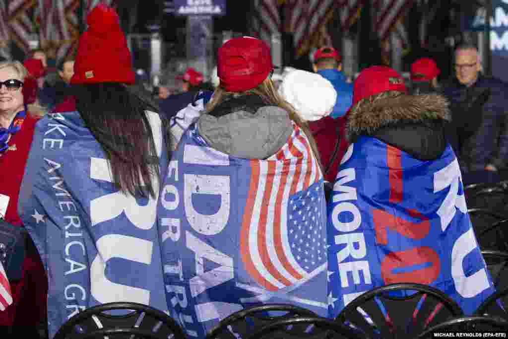 Президент Дональд Трамп выступает перед собравшимися. "Мы никогда не отступим, – заявил он. – Мы не дадим украсть ваши голоса".